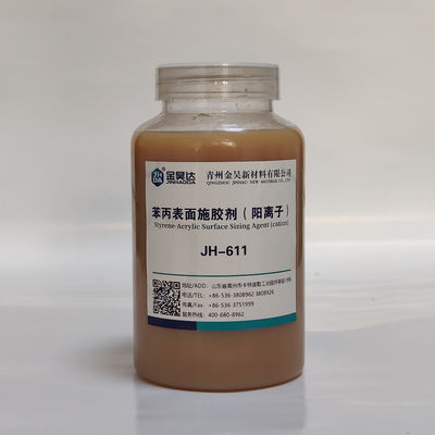 JH-611は,特殊な生産プロセスを通してスタリン,アクリレートおよびポリマーの種類によって共同ポリマー化された効果的なカチオン型スタリンアクリルエムルションの一種です.効果的にスターチとマッチし,スターチ層は,交叉リンク強度と水害性のより良いパフォーマンスをさせることができます低用量,低コスト,よりよい表面サイズ効果と便利性は,JH-611の主な特徴です.工芸用紙など