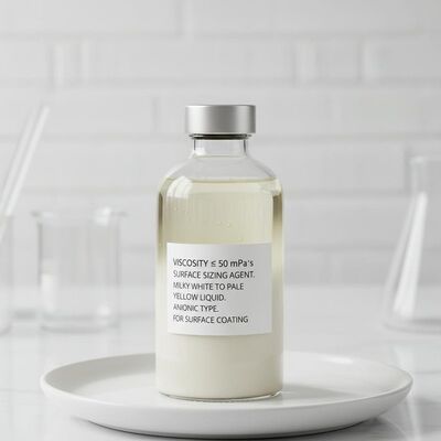 この高性能の表面サイズ化剤は,二重コーティング紙,静電コピー紙,白紙を含む文化紙の質と耐久性を向上させます.アニオニックイオン性のあるミルク色の白色から淡い黄色の液体として製成耐水性,印刷性,表面強度を向上させる優れたサイズ効果を提供します.